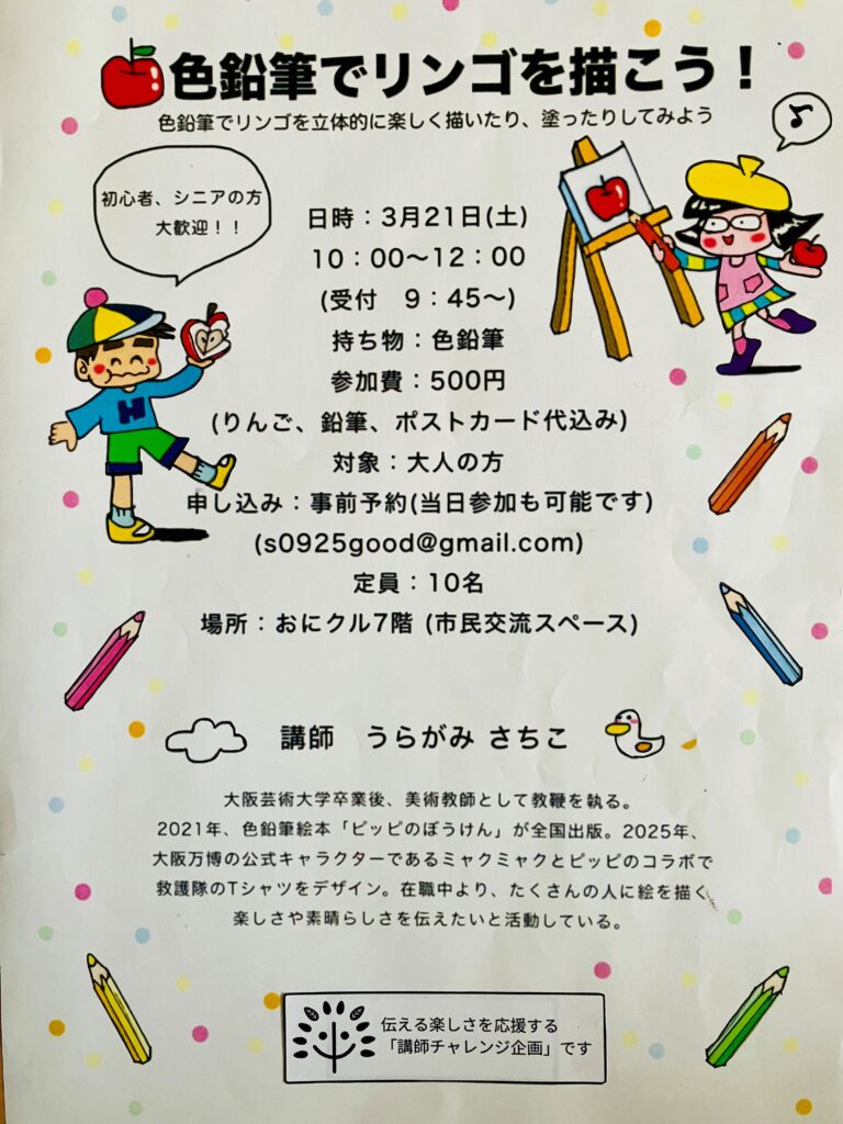 ■費用:500円(りんご・鉛筆・ポストカード代)
