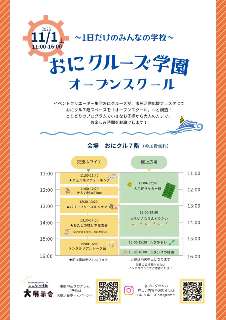 市民有志『おにクルーズ』。おにクル1周年week(2024年11月1日~9日)で、プログラムの企画から本番の運営を「楽しむ」ことを体現。おにクルを楽しむ達人です!