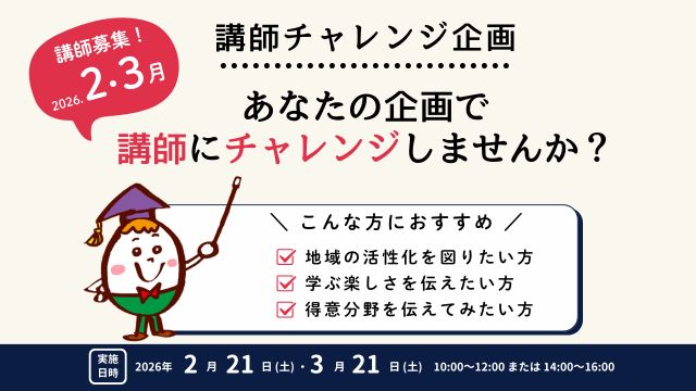 みなさんの知識や技術、経験をいかして、講座を企画し、講師にチャレンジしてみませんか?