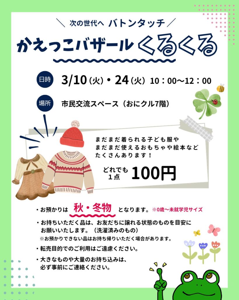 ●日時:3月10日(火)・24日(火) 10:00~12:00