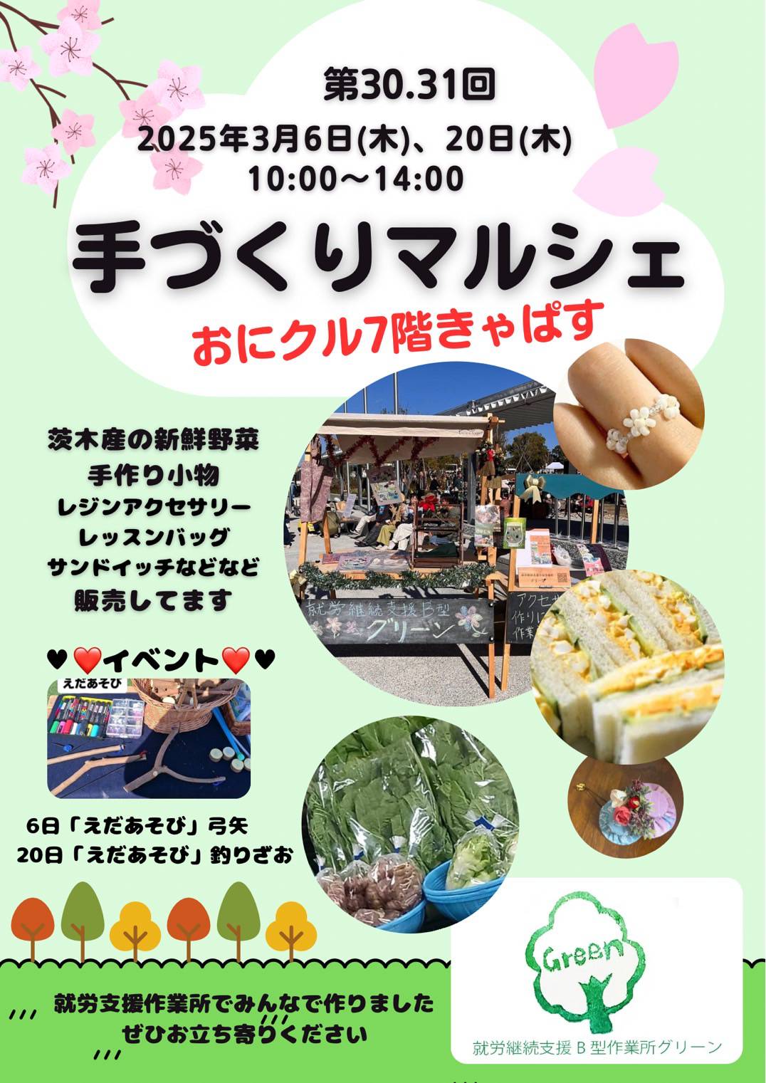 | 20 | 木 | 9:00~15:00 | 手づくりマルシェ | グリーン |
