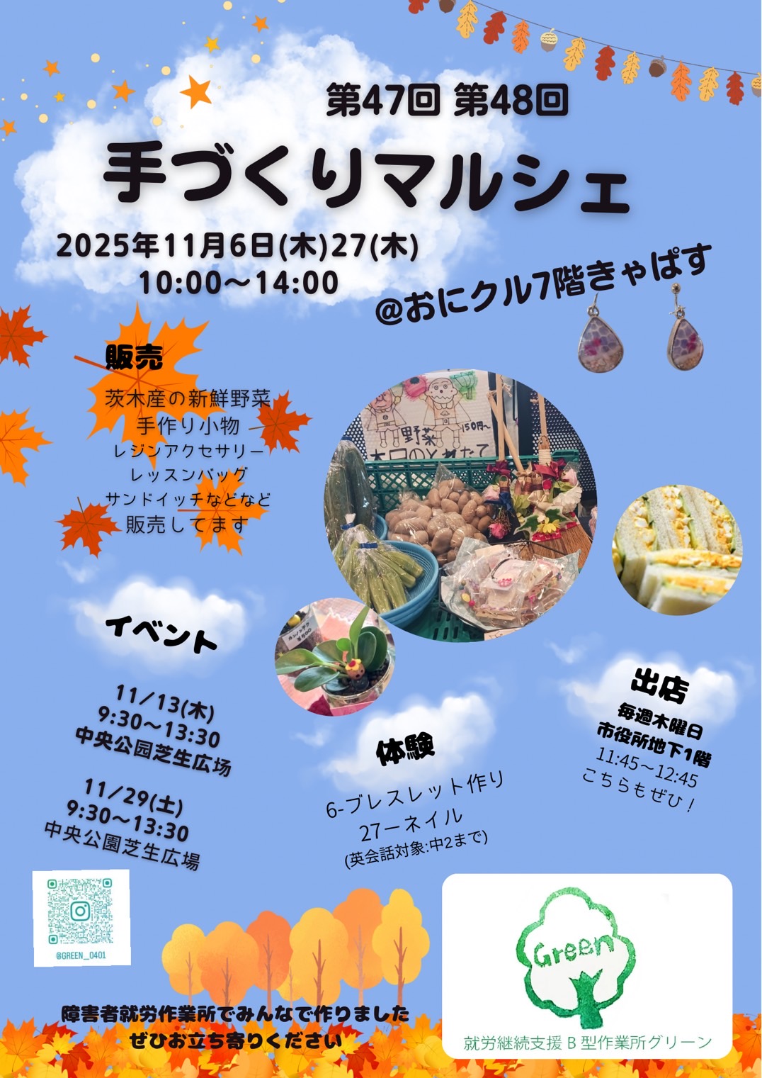 69:00~15:00手作りマルシェグリーン